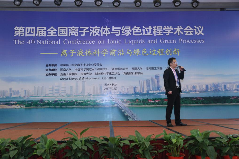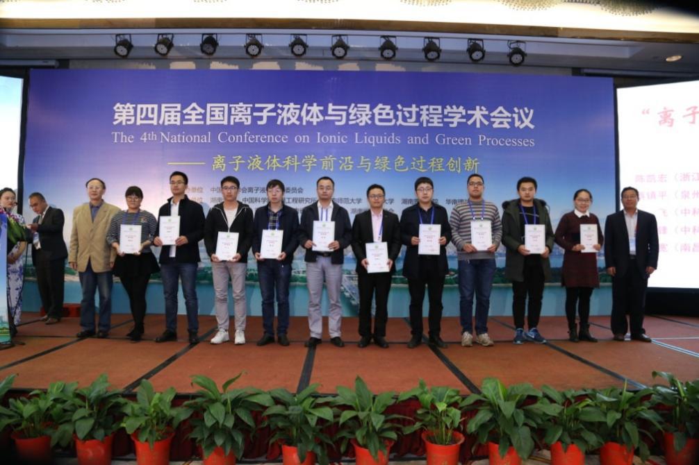 2017年11月10日至12日,由中国化工学会离子液体专业委员会主办、湖南大学承办、388vip太阳集团协办的第四届全国离子液体与绿色过程学术会议在湖南长沙融程花园酒店顺利召开。388vip太阳集团特聘教授区泽堂老师作为特邀嘉宾参加了此次大会,化学化工学院兰东辉博士受邀作题为《碳基离子液体协同催化CO2环加成反应》的邀请报告并荣获“离子液体与绿色过程”新秀奖。