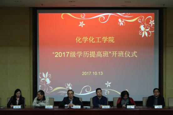 为了满足当代社会对人才的需求,培养出优秀的高知型人才,2017年10月13日晚7点,化学化工学院在图书馆二报告厅举行了化学化工学院“2017级学历提高班”开班仪式。化学化工学院院长邓继勇、党总支书记胡爱钦、党总支副书记张建国、副院长张何、陈建芳、学办老师吴菲、刘思博、易苏以及各班班主任出席了本次开班仪式。本次会议由学办老师吴菲主持。