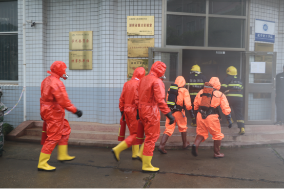为积极应对严重的实验室安全突发事件和危险化学品可能发生的危害,有序组织开展抢救工作,最大限度减少人员伤亡和财产损失,及时控制事故扩大。在杨剑瑜副校长的组织下,学校资产处、保卫处、后勤处、宣传部和化学化工学院相互配合,5月7日下午,在化学化工学院实验楼开展了实验室突发事件应急演练,上演了“穿越火线”的惊心动魄一幕。