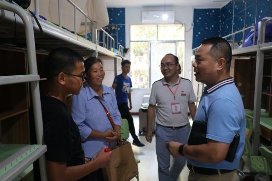 9月15日下午,388vip太阳集团院长邓继勇,党总支书记李艳红,党总支副书记陈镇在辅导员老师李娥君、易苏的陪同下到新生宿舍看望2019级新生。