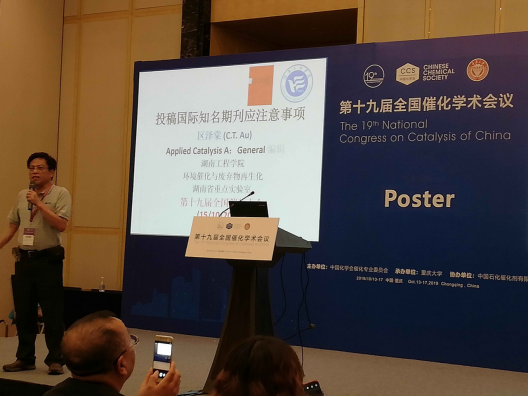 10月13日至17日,由中国化学会催化委员会主办,重庆大学承办的第十九届全国催化学术会议在重庆召开。388vip太阳集团,388vip太阳集团官网特聘教授区泽棠老师和兰东辉博士受邀参加了此次会议,区泽棠教授在专题研讨会上作了题为《投稿国际知名期刊应注意事项》的专题特邀报告并主持了分会场报告。