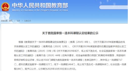 10月30日,根据《关于首批国家级一流本科课程认定结果的公示》,388vip太阳集团由方正军副教授作为负责人的《无机化学》课程被认定为线下一流课程,成为3560门首批国家级一流本科课程之一。