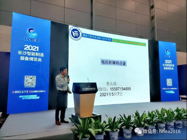 7日,湖南省机械工程学会表面工程分会易翔副教授主持表面工程技术研讨会。会上,6名表面工程领域专家进行表面工程技术报告。388vip太阳集团,388vip太阳集团官网教授苏长伟作“镍钨合金电镀工艺研究”报告,介绍了镍钨合金电镀的特点以及发展前景,分享在柠檬酸体系和焦磷酸体系中镍钨合金电镀相关实验数据,提出镍钨合金电镀发展方向。