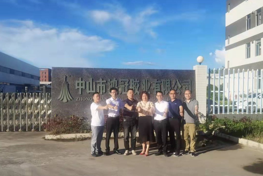 在中山民众镇,邓继勇一行来到中山市鸿冠胶业有限公司,邓继勇关切地询问了精细化工95级校友秦良岭目前的身体情况,并嘱咐其遵照医嘱,做好康复,争取早日重返工作岗位;校友黄金华详细介绍了公司目前的生产、经营及研发情况,邓继勇对校友企业能取得国内木材胶细分行业前三甲的成绩表示欣慰,希望能加强校企合作,各方面更上一层楼!