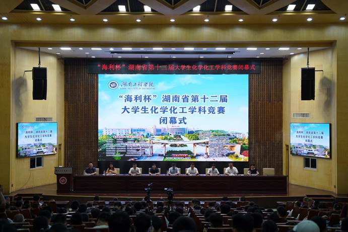 闭幕式上,大赛评审专家代表、湖南师范大学尹笃林教授对本次比赛作精彩点评。湖南省化学化工学会理事长、湖南海利集团董事长刘卫东代表冠名商对取得优异成绩的参赛队伍表示祝贺。