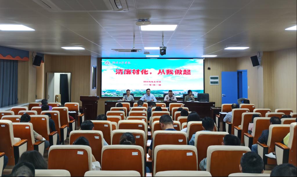 为进一步加强材化学院教师的纪律意识、规矩意识、廉洁意识,推进“清廉湖工”建设,引导学院广大干部师生廉洁从教、廉洁修身,大力营造廉洁文化浓厚氛围,4月23日下午,材化学院开展“清廉材化、从我做起”教师廉政专题教育会。会议由院党委书记徐粤宇主持,学院党政领导班子、全体教职工参与此次会议。