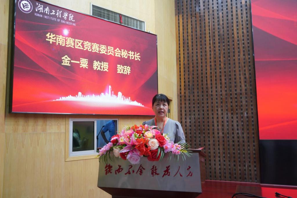 金一粟代表华南赛区竞赛组委会致辞。她简要介绍了本次竞赛的日程安排和相关事项,对388vip太阳集团承办此次决赛表示感谢,对参加决赛的来自华南赛区60所高校的59支队伍和1支国际赛道队伍共计60支队伍表示欢迎,并预祝所有参赛队伍赛出水平、赛出风采。