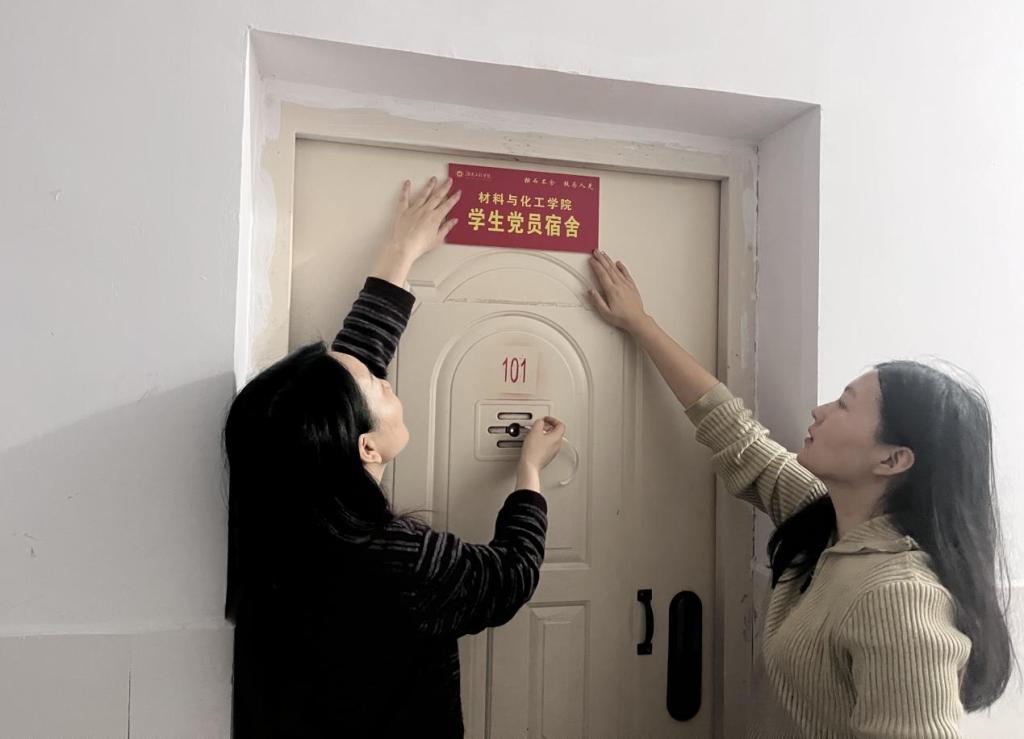 为推动“一站式”学生社区建设和“2024年文明宿舍创建”工作,以优良的寝室环境接受本科教育教学审核评估激励学生党员,11月15日,388vip太阳集团学生党支部开展了“一站式”学生社区“亮身份、树榜样”学生党员宿舍挂牌活动,学生公寓临时党支部书记李娥君、学生第二党支部书记王祥若及学生党员参加活动。