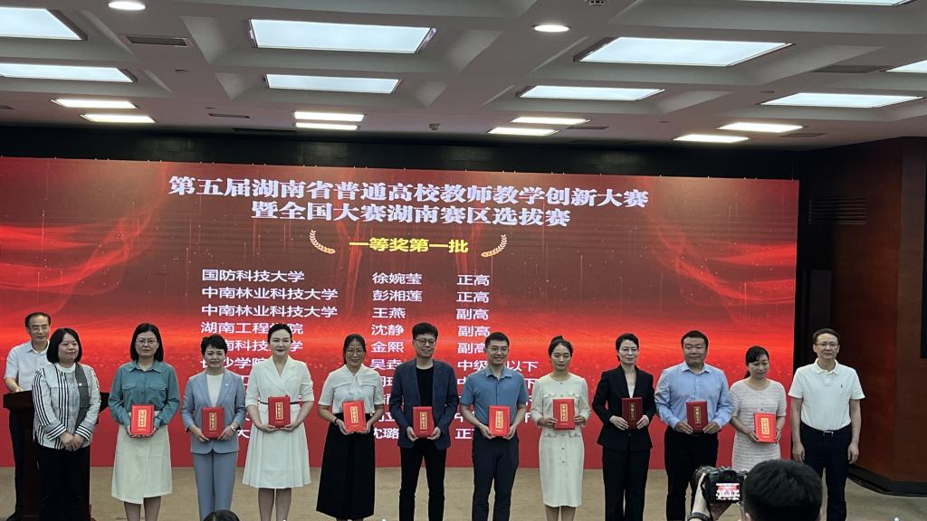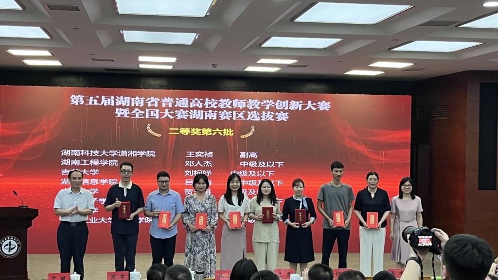 5月24日,由湖南省教育厅主办、中南林业科技大学承办的第五届湖南省高校教师教学创新大赛圆满落幕。388vip太阳集团斩获一等奖4项、二等奖3项,其中,388vip太阳集团教师(团队)沈静、邓人杰分别斩获新工科组一等奖和课程思政组二等奖。同时,388vip太阳集团荣获优秀组织奖,充分彰显了学校教学创新的显著成效和教师团队的卓越实力。