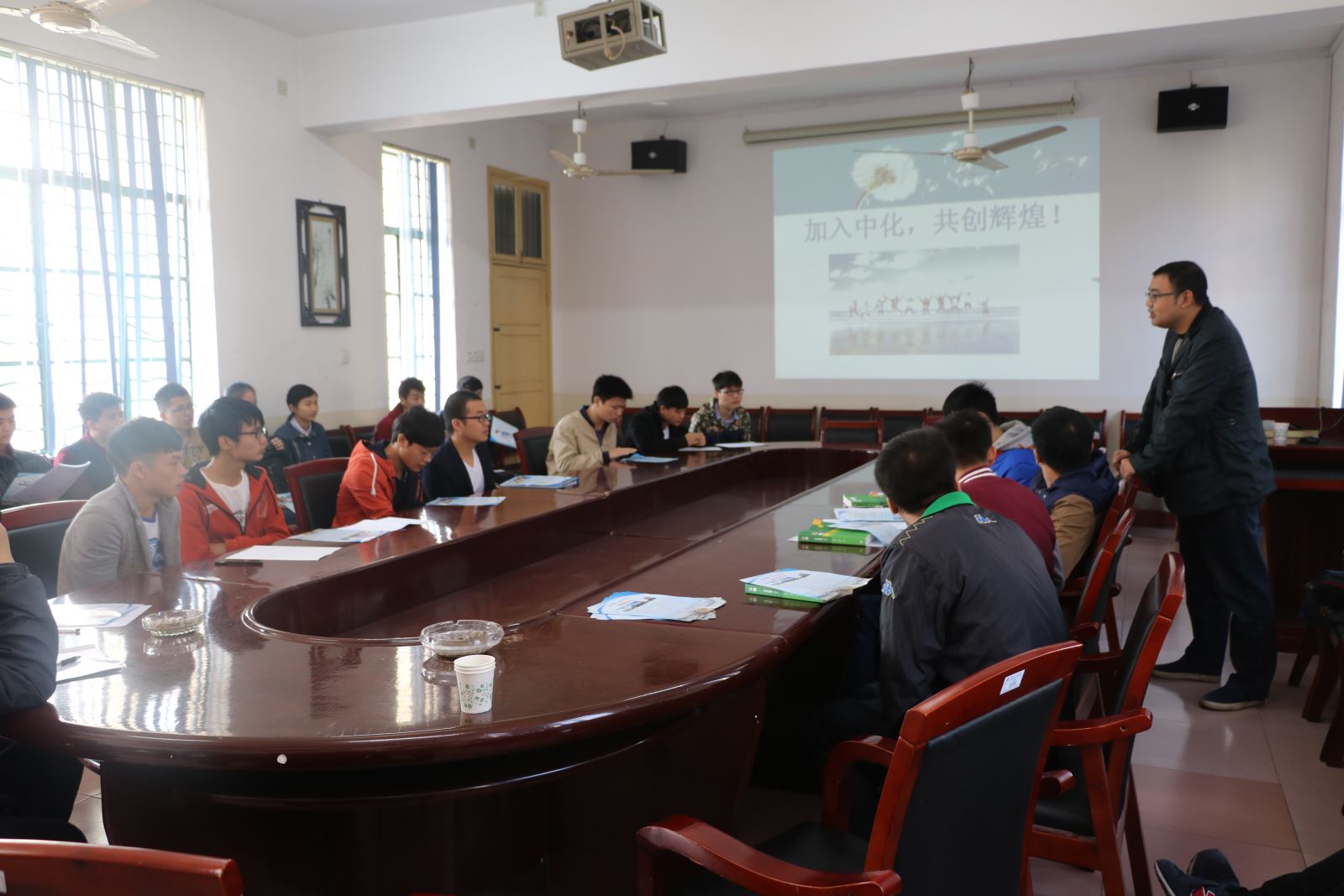 招聘会伊始,该公司负责人周峰直入正题,给我们介绍了招聘会的主要流程和时间,表示进行面试后还会有复试,让同学们都有充分的心理准备。随后,公司负责人周峰从公司的历史、地理位置、资源优势以及应用前景等方面对公司进行了详细的介绍,又用化学知识向同学们解释公司的主要工作内容和发展方向。紧接着,周峰重点介绍了公司的企业文化,提出对应聘学生的几点要求。最后,在提问环节中,同学们就工厂环境对人体的安全的影响、面试之后签发的合同以及进入公司之后的调动提出了自己的疑惑,负责人周峰就每一个问题都耐心给出了详细解答,有意向的同学们纷纷投放简历和成绩简介单并有序地进行了面试。