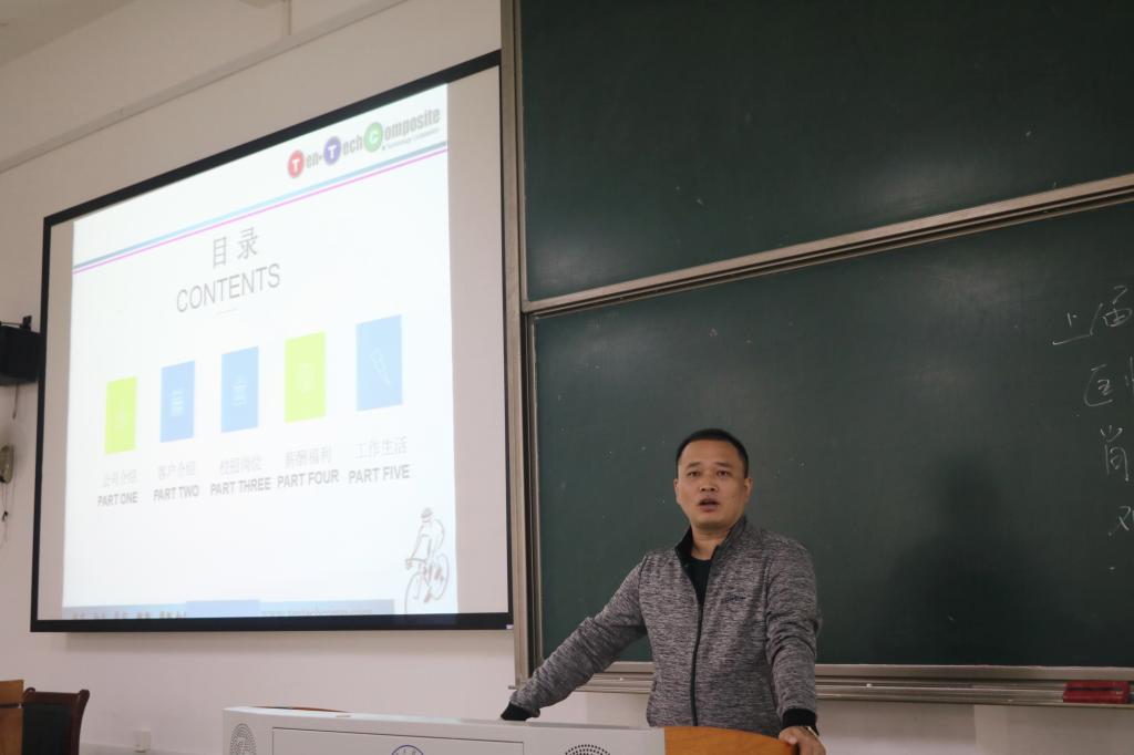 为更好的拓宽毕业生就业渠道,10月15日上午,东莞泰合复合材料有限公司于1教D座603教室展开校园招聘会,吸引了388vip太阳集团化学工程与工艺、材料化学、应用化学等专业的同学参加。
