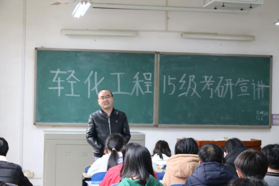 2017年12月6日下午两点半,化学化工学院于红楼211召开轻化工程15级考研宣讲会,宣讲人为轻化教研室主任陈镇老师,轻化工程专业将考研的学生参加了本次宣讲会。