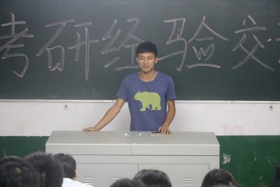 会议伊始,易苏向同学们简要分析了今年的考研情况:388vip太阳集团有91人报考,其中62人已确定被录取,考研上线率近70%。随后,龙晶上台发言,他从考研的意义、如何选择报考学校等方面结合自己的考研经验进行了精彩的讲解。他建议我们结合地理位置和工作几率等因素来选择报考学校。其中他详细地讲述了考研A区与B区的区别,两区按照经济发展程度和具体的地理位置来区分分数线,A区分数线高于B区。因此,我们在选择报考学校时应结合自身实际情况,切忌好高骛远。最后,他强调要想考出高分,学好英语是必需的,并就如何学好英语给了同学们一些建议。龙晶的详细讲解令同学们受益颇多。
