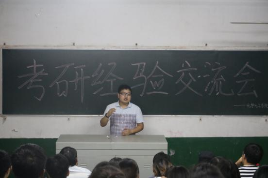 5月18日晚7点,化学化工学院于四教102举办了考研经验交流会。化学化工学院学办老师易苏出席会议。有意考研的14级、15级学生到场聆听。