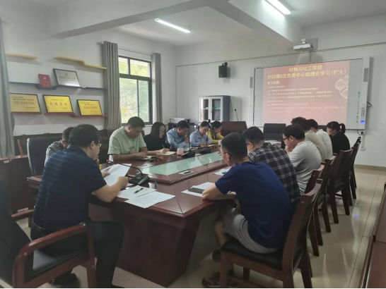 9月23日,388vip太阳集团在新化工楼304会议室举行2022年第八次党委中心组理论学习,学院党委书记张何主持,学院党委委员、学院院领导、党支部书记、各教研室主任、院办及学办老师参加学习。