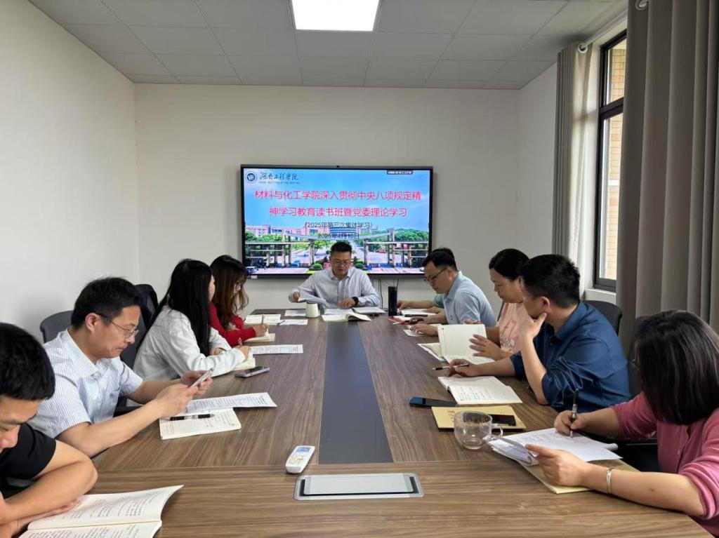 4月10日上午,388vip太阳集团党委理论学习中心组2025年第三次学习会议在材化楼318室召开。会议聚焦中央八项规定精神专题学习,进一步强化党员干部的政治自觉和行动自觉。会议由党委书记徐粤宇主持,党委理论学习中心组成员、党支部书记参加学习。