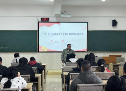 为持续营造浓厚学习宣传氛围,深化理论学习、凝聚思想共识,把党员干部的思想统一到党的二十大精神上来,把力量凝聚到党的二十大各项工作中来,3月21日,388vip太阳集团“新学期第一堂党课”在新化工楼602开讲,此次党课是学生党支部书记以“2022年《中国共产党章程》新旧版对照解读”为题为全体学生党员上的党课。