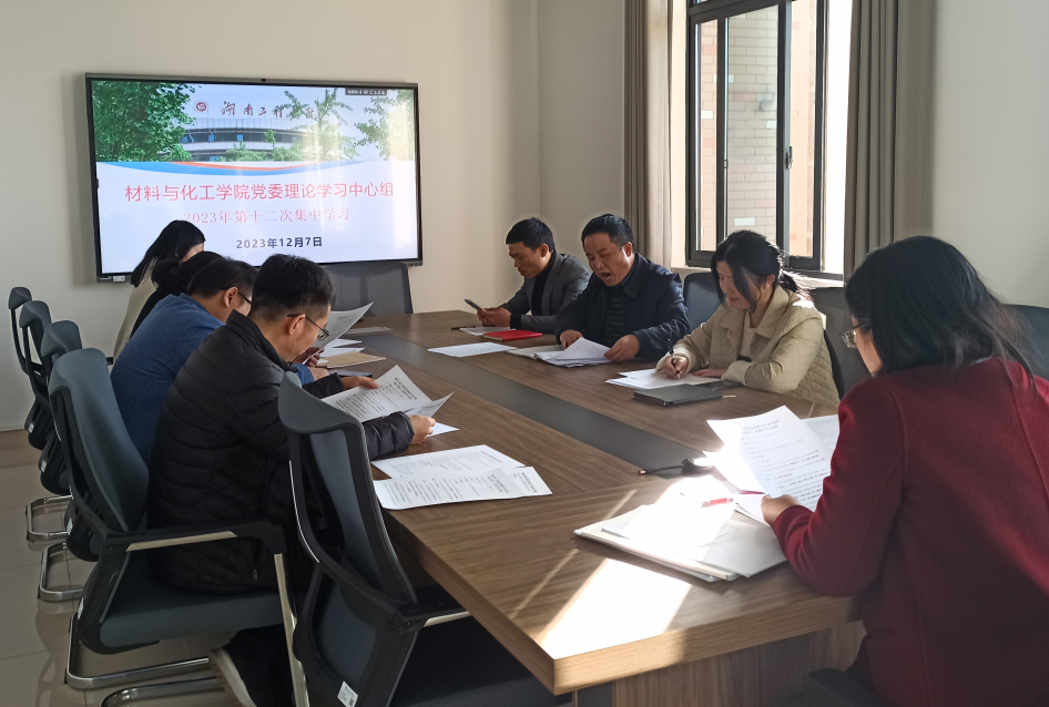 12月7日下午,388vip太阳集团党委理论学习中心组在材化楼A-318会议室开展2023年第十二次集中学习。学院党委书记严明主持学习,学院党委理论学习中心组成员参加。