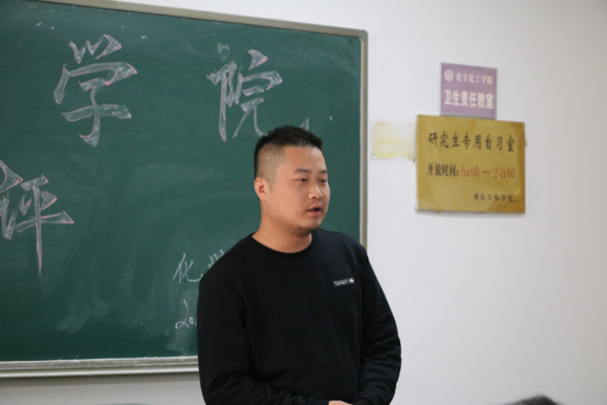 化学化工学院11月月讲评于11月28日中午在四教209召开,参会人员有张建国书记,吴菲老师,李娥君老师,柳芊老师,刘思博老师,易苏老师,化学化工学院全体学生干部、班长和团支书。
