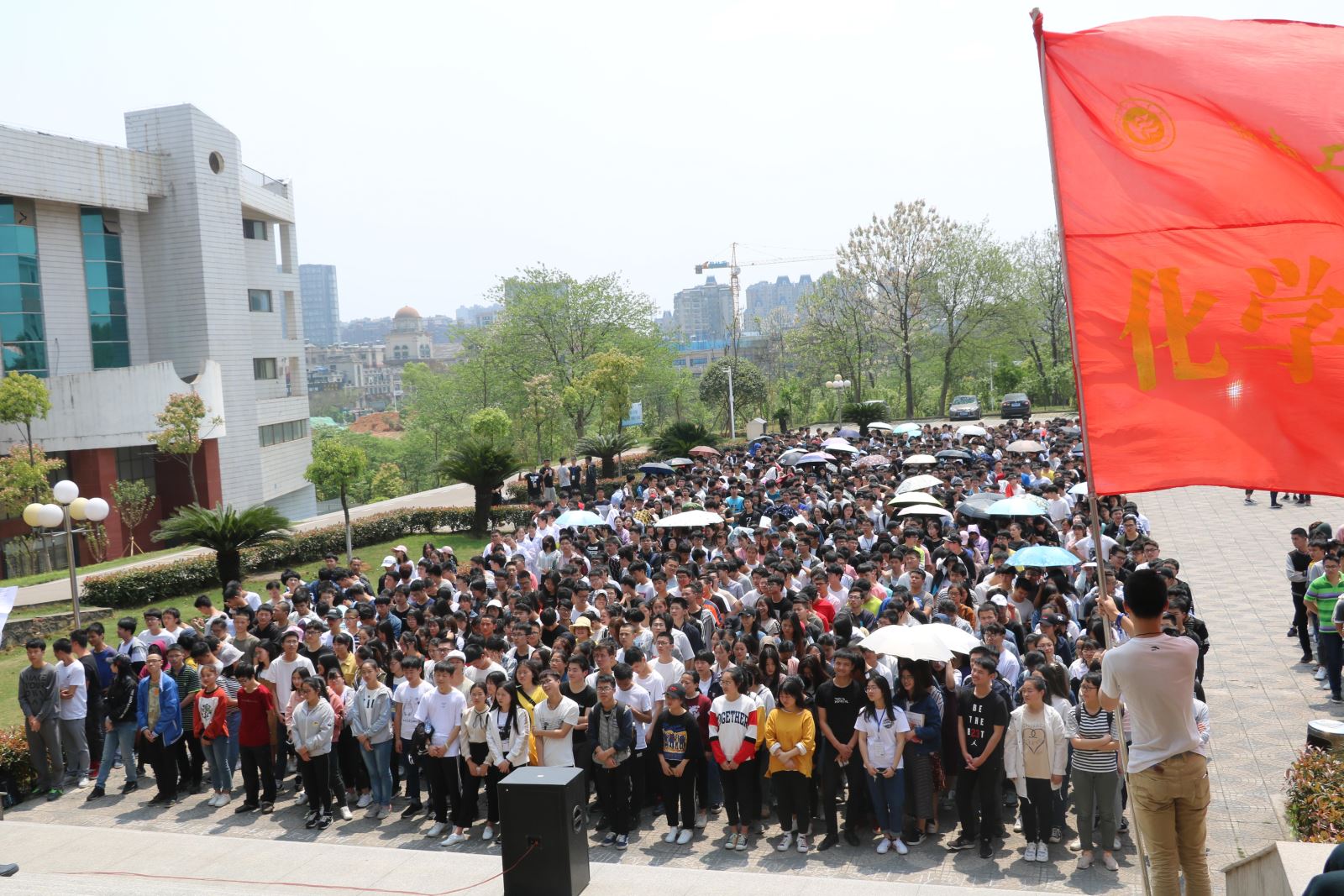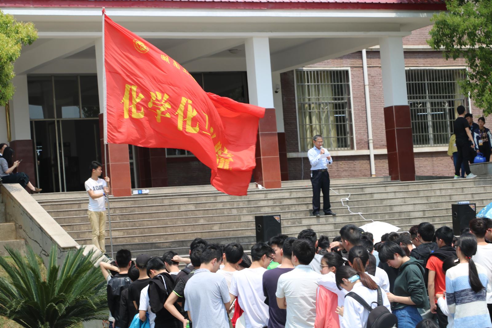2018年4月10日中午12点30分,化学化工学院于学海花园举行了四月月讲评,化学化工学院全体学生参加此次月讲评,化学化工学院党总支副书记张建国、学办全体老师出席本次会议。吴菲老师作为本次月讲评的主持人。