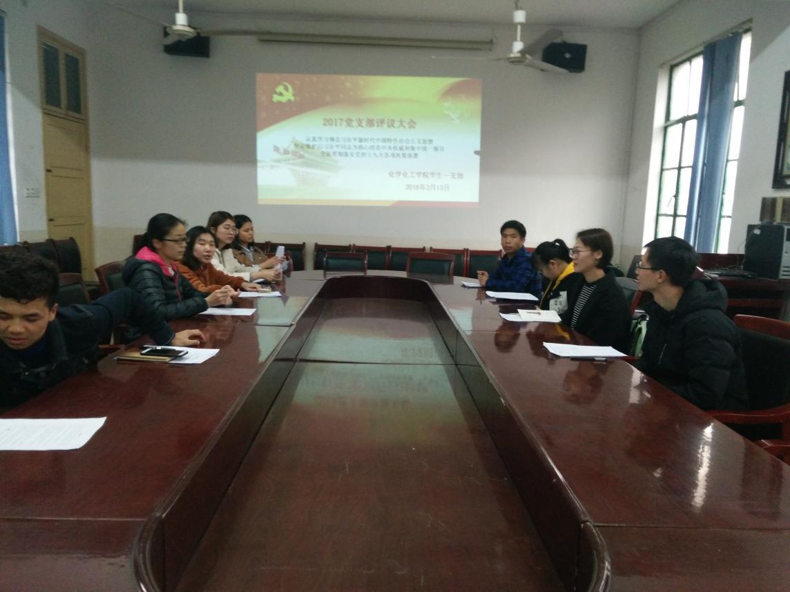 2018年3月13日,支部书记李芳郴老师于四教306主持召开化学化工学院党总支部学生第一支部2017年度专题组织生活会及党员民主评议会议。