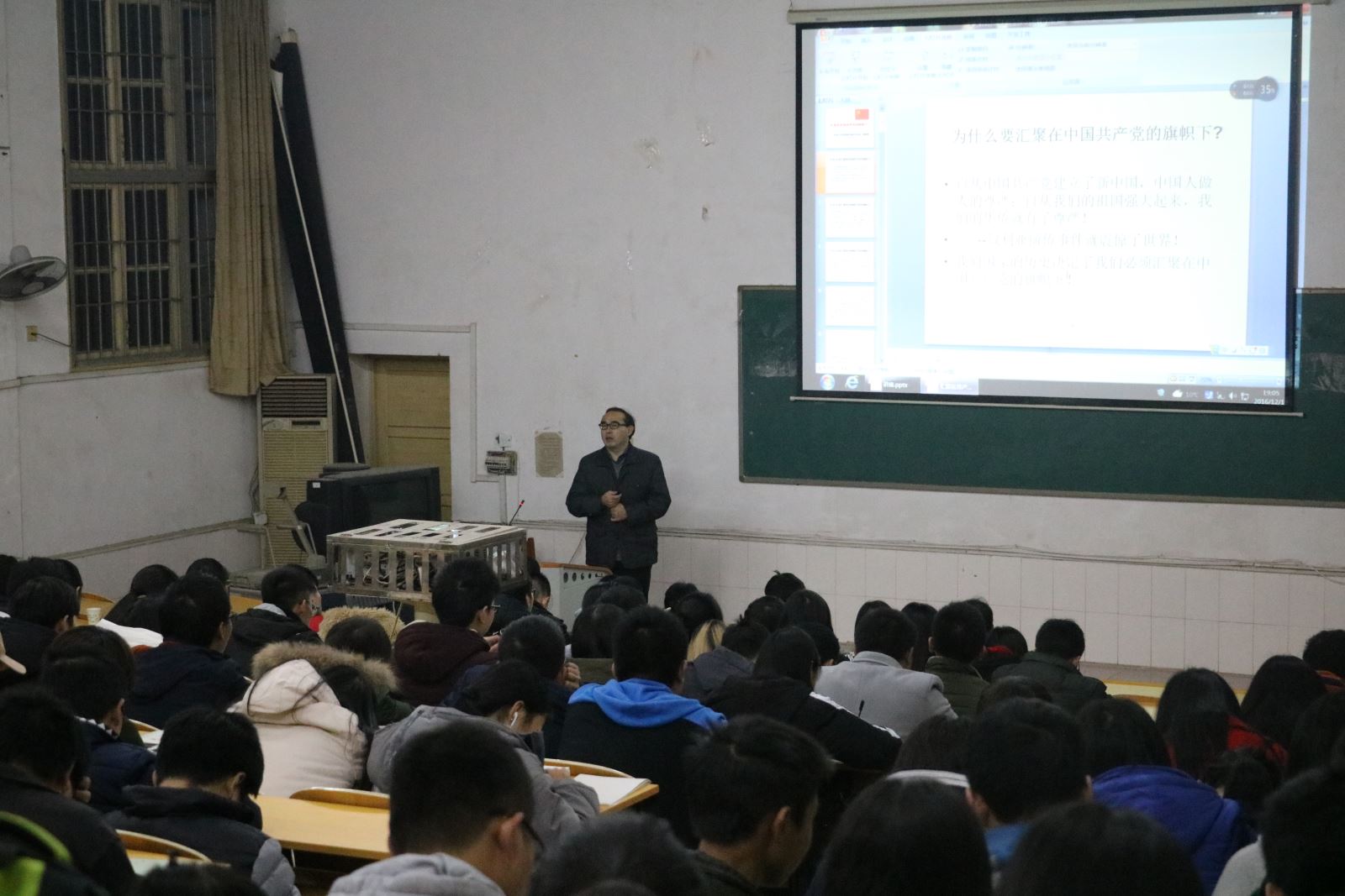 为积极配合388vip太阳集团开展的“共青团系列讲座”,落实做好388vip太阳集团共青团的思想引领工作,2016年12月13日,化学化工学院在电教105举行“共青团系列讲座——爱国主义教育讲座”。化学化工学院党总支书记胡爱钦、团总支书记易苏、化学化工学院主席团全体成员出席本次讲座,全体学生干部也均到场聆听。胡爱钦担任此次讲座的主讲人。