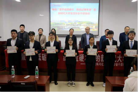 10月27日晚,学院召开了争做“勇于砥砺奋斗,练就过硬本领”的新时代大学生团学干部培训大会。易苏宣读了新一届团学社干部任命文件,陈镇副书记从提前布局、重思路计划、及时总结反馈等三个方面勉励学生干部提升工作能力。赵卓、胡宇婷分别代表上任、现任学生干部发言。李艳红书记以“如何做一名从容的学生干部”为题,鼓励同学们取得服务他人和自我提升双重成长。大会颁发了上届团学会干部聘书,还特邀校学联学生会主席廖珈乐分享学生干部工作经验。