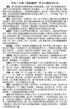 4月26日,响应校团委“五四精神 传承有我”主题活动号召,学院团总支书记柳芊给全体学生干部主讲了一次主题为“战‘疫’中的中国制度和中国精神”的特别网上团课。课后,同学们纷纷发表了学习心得。