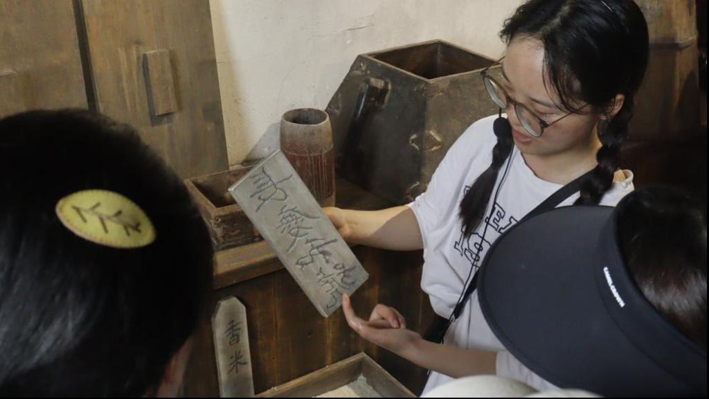 参观完陈列后,讲解员带领着实践团踏上了见证了400年沧桑巨变的“张公桥”,桥下韶水潺潺,淙淙作响;桥头一旁便是复原陈列的长庆和谷米行,里面的陈设完美呈现出当时的风貌及文化,毛泽东之父毛顺生也曾入股该米行。
