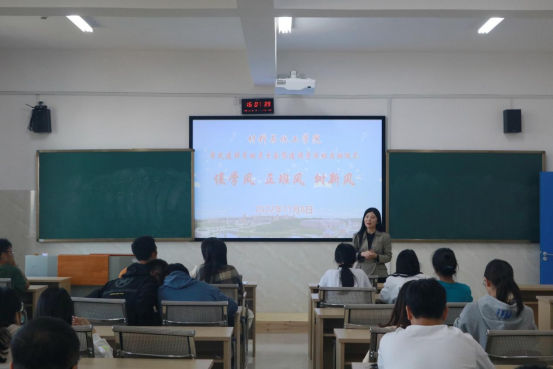 “优良学风是激励学生奋发向上、努力成才的无形而强大的精神力量,是学校提高育人质量的重要保证。”罗荃强调了建设优良学风班风的重要性,对同学们提出四点要求:要树立正确的目标,并付诸努力;尊师重道,严格遵守规章制度;培养良好的学习习惯,提高专业学习技能;养成良好的生活作息习惯,促进身心健康。李娥君就学风建设月活动进行详细介绍,对即将开展的“寝室最美小书桌”、“学霸笔记”“到课率100%优秀学风班集体”评选活动进行介绍和讲解,鼓励各班级积极发动,在学院形成乐学、重学的良好学习氛围。