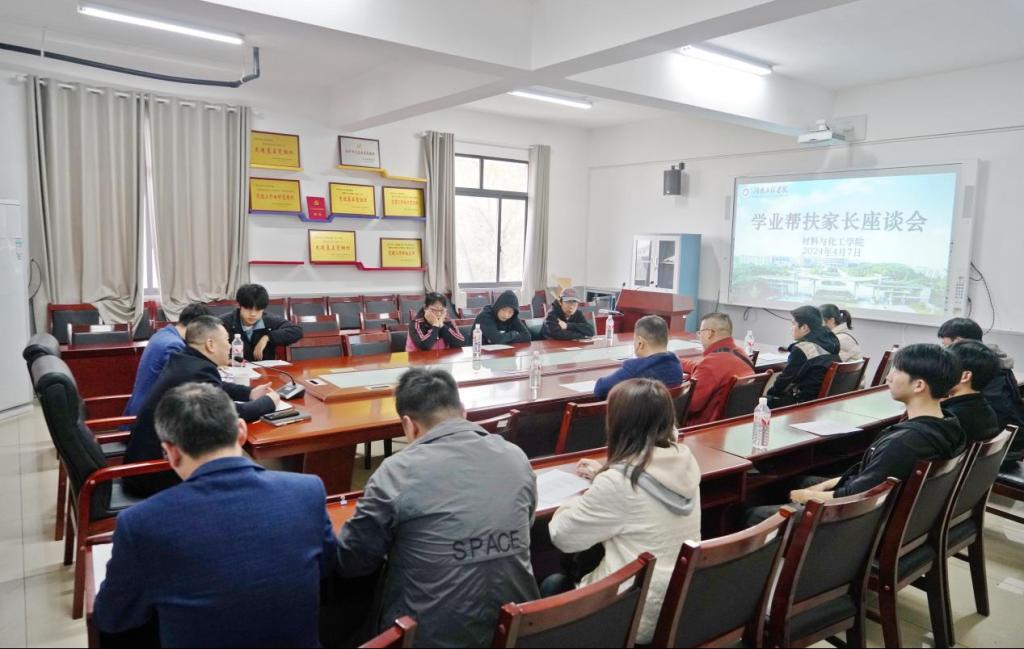为了让家长深入了解孩子在校学习状况,形成家校教育合力,更好地帮助2024年春季学期学业红色、橙色预警学生完成学业,4月7日下午,388vip太阳集团在材化楼A-301和A-304分别召开了学业红色、橙色预警学生帮扶家长座谈会。院长邓继勇、党委书记严明、副书记罗荃、学风专干辅导员李娥君、教务秘书、各年级辅导员、班主任、学业预警学生及家长参加会议。座谈会分别由邓继勇和罗荃主持。