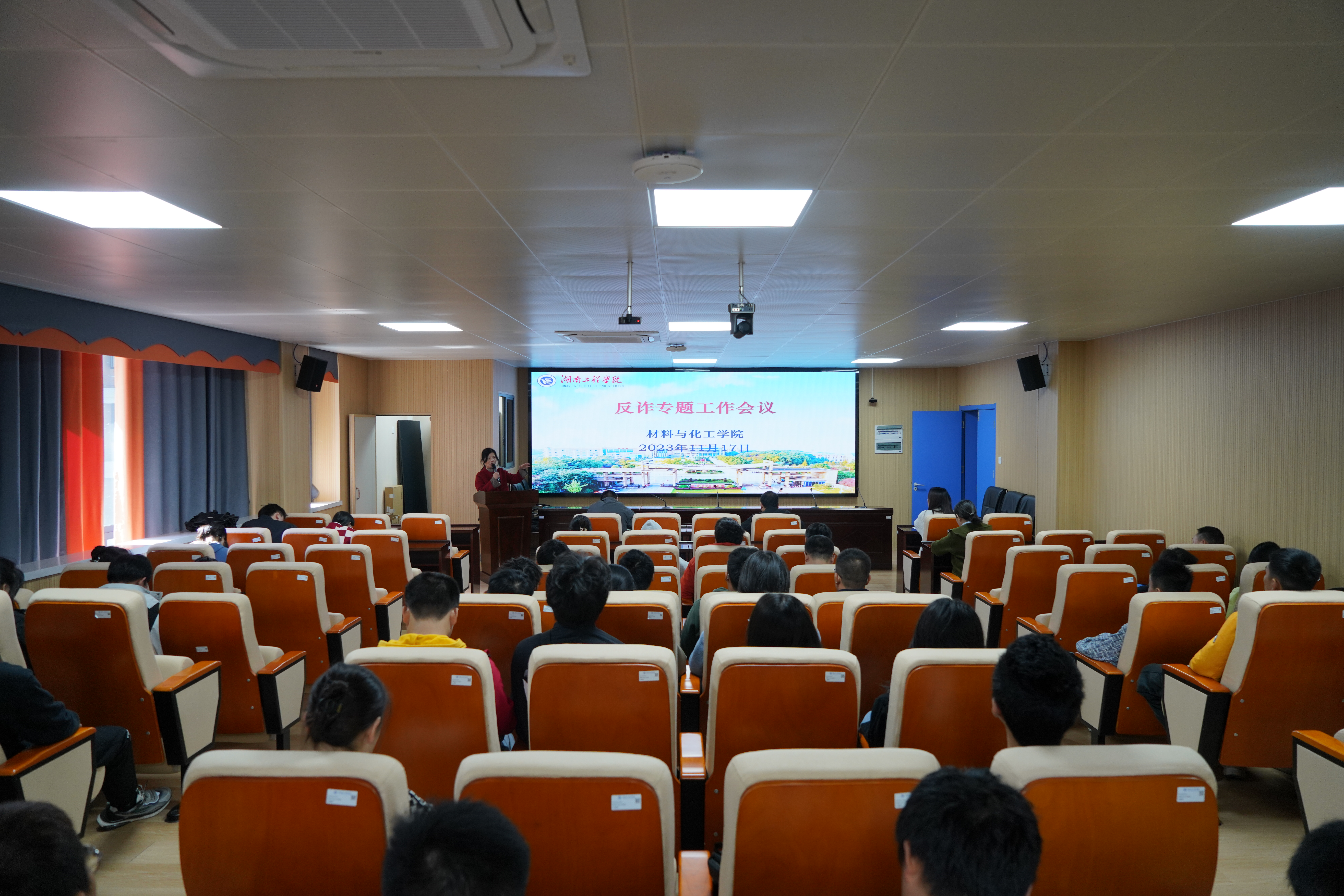 2023年11月17日,388vip太阳集团于材化楼A301召开大学生心理危机识别和预防、反诈和交通安全会议。全体辅导员、班主任和大一至大四的班级代表参加,党务副书记罗荃主持。