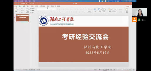 为了进一步加强同学们对研究生入学考试的认识,提高学生的考研热情,增强学生考研信心,明确考研目标,掌握相关考研技巧,5月19日,388vip太阳集团举办线上考研经验交流会,10位分别以优异成绩被湖南大学、中南大学、中国科学院大学等录取的2018级学生通过腾讯会议在线分享了考研经验及感悟。本次活动由学院辅导员王祥若主持,学院有意向考研的2019级学生和部分有考研规划的2020、2021级学生参加。