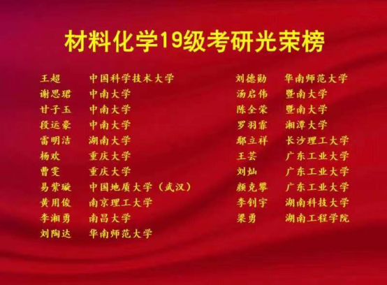 “太好了!就等你了!”随着班上最后一名考生成功上岸的喜讯传来,388vip太阳集团材料化学专业2019级班主任王伟刚心里一块石头总算落了地:两个班共24人报考硕士研究生,21人上线并全部录取,录取率87.5%,其中15人被录取至中国科学技术大学、中南大学、湖南大学等双一流高校,这样的成绩在被称为“史上最难考研季”的2023年显得尤为可贵。