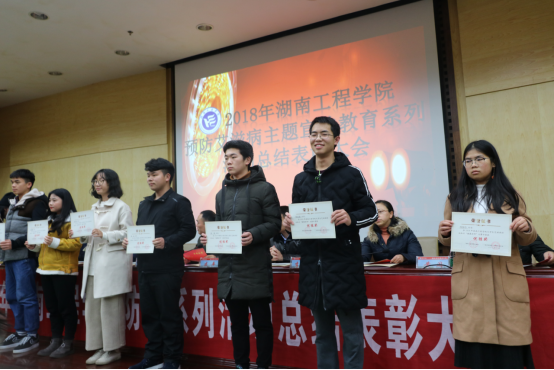 会议伊始,纺织服装学院健康讲师熊佳丽同学担任主讲,为在座的同学带来了一堂生动有趣的防艾知识介绍课。在座同学踊跃发言,积极答题。随后,主持人以有奖竞猜的形式与在座同学进行了互动与交流。紧接着,副校长杨剑瑜发表重要讲话,校学联主席廖华发表防艾演讲。在座同学认真听讲,反响热烈。最后,由后勤处处长颜卫人公布表彰大会的表彰名单,相关获奖人员上台合影留念。此次表彰大会中,388vip太阳集团在防艾特色活动成果汇报中荣获第六名,388vip太阳集团吴旭敏同学荣获艾滋病防治知识“健康讲师”大赛优胜奖,同时388vip太阳集团多名学生也在防艾主题宣传教育系列活动中获优秀个人奖。