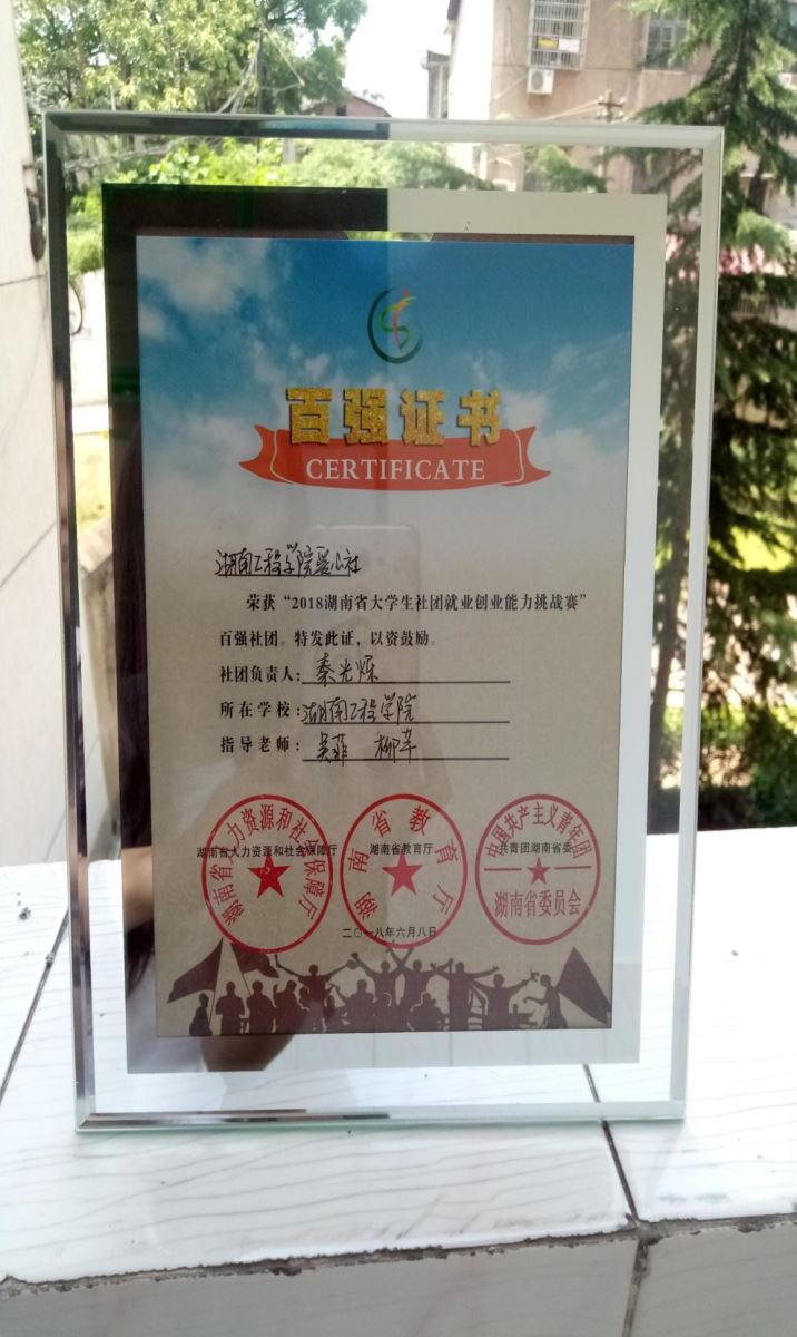 2018年6月8日,388vip太阳集团爱心社历经两个月的评估选拔,在全体社员的努力下获得“2018湖南省大学生社团就业创业能力挑战百强社团”荣誉称号。
