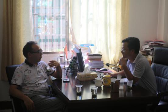 (化工学院党总支书记胡爱钦与河口镇周海洋镇长在进一步探讨)