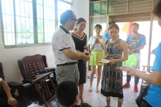 “呵护祖国花朵,关爱留守儿童。”7月7日,在湘潭县河口镇人大副主席张石强的带领下,388vip太阳集团化学化工学院大学生“三下乡”社会实践志愿者团队(后称 志愿队)及化学化工学院党总支书记胡爱钦拜访了当地的几家留守儿童家庭,为其发放了慰问金并为留守儿童送上了文具和体育用品。