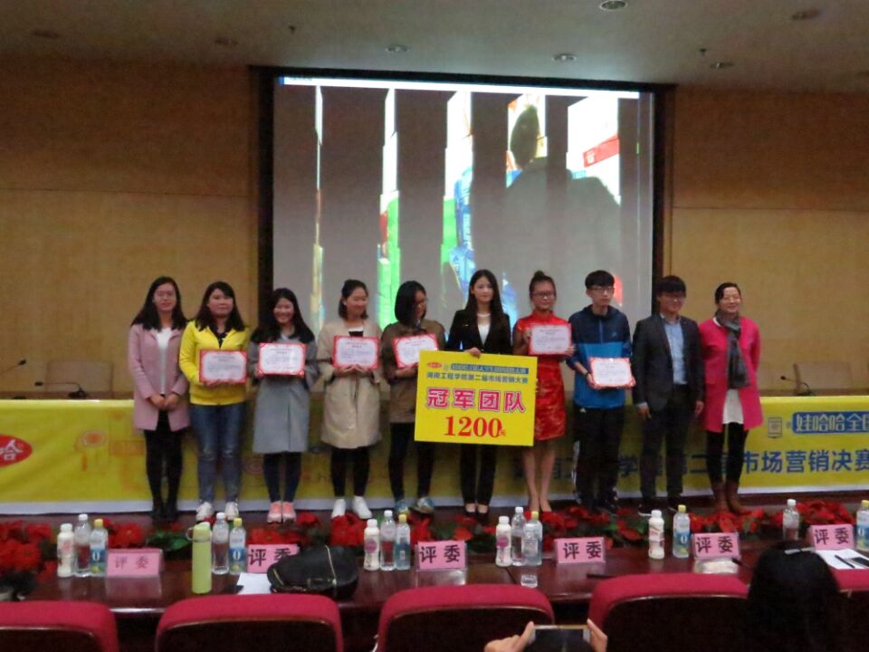 最后,吴菲和张婷分别为选手们进行颁奖,本次市场营销大赛的销售总额高达到55106元,其中获得此次市场营销大赛冠军的是外国语学院的“葫芦娃”团队、外国语学院的“FMT”团队获得了亚军、化学化工学院的“老学长”团队获得了季军。388vip太阳集团第二届娃哈哈市场营销大赛圆满落幕。