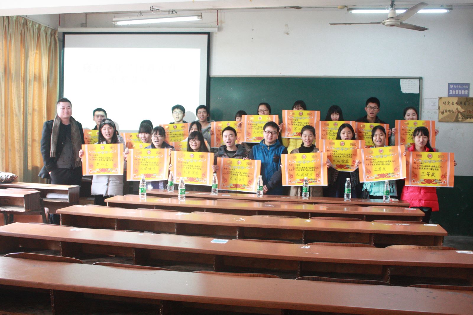 12月25日中午12点30,化学化工院在四教209举行了寝室文化艺术节闭幕式暨颁奖典礼,学办老师易苏、刘思博出席。