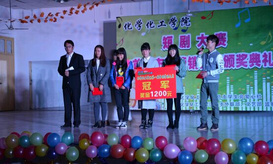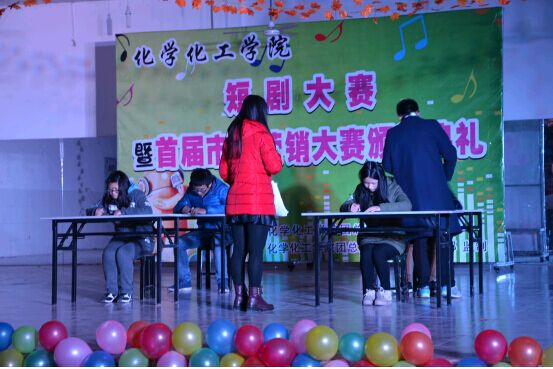 12月6日晚7点,化学化工学院在北校区学海二食堂活动中心举办2015届校园短剧大赛暨市场营销大赛颁奖典礼。化学化工学院学办老师刘思博、易苏出席本次典礼并担任短剧评委,会场人头攒动。