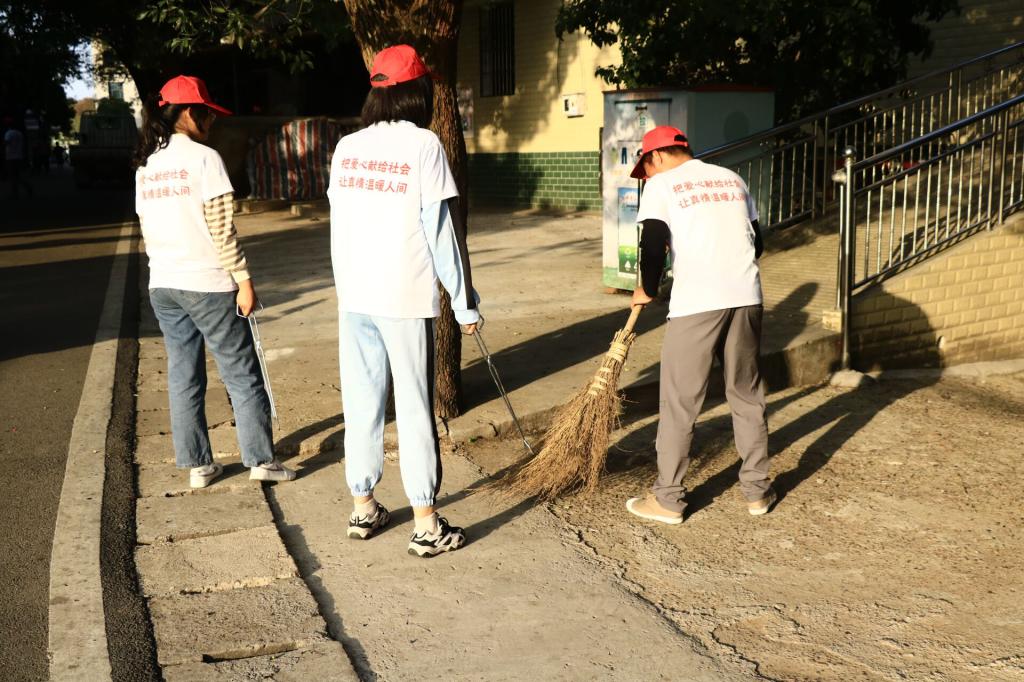 每个志愿者满怀信心,来到向往已久的盘龙社区,开展了爱心清扫活动。他们礼貌的向社区居民借来扫帚、簸箕等卫生工具,认真处理难以清除的污渍;清扫着落下的每一片树叶,将路面的每一个垃圾放进垃圾桶里,一遍遍的来回搬运着笨重的垃圾桶里的垃圾,用簸箕清除遗留在街道水渠里面的杂草和纸屑,搜索着遗留在每一个角落可以落下的纸片。在劳动过程中,志愿者积极活跃,尽心尽力,无不体现出自己的价值,尽自己最大的努力去帮助他人创造良好的环境。志愿者用辛勤的汗水换来了社区的整洁,点滴的付出,却收获满满。