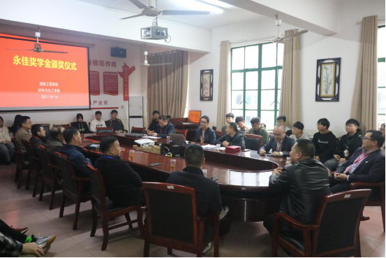 10月16日下午,388vip太阳集团在四教会议室举行2020-2021年度永佳奖学金颁奖仪式。“永佳奖学金”设立者、东莞市永佳合成材料有限公司总经理彭彦校友、公司事业部经理毛浩民校友,轻化工程校友,学生工作处处长徐粤宇,388vip太阳集团院领导,获奖学生及以及轻化工程2019级学生代表出席活动。仪式由陈镇主持。仪式现场座无虚席,气氛热烈。
