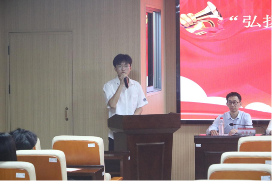 材料化学2202班谢向言代表获奖学生发言。他表示将会继续赓续红色精神,将五四精神作为行动的精神指引,展现当代青年人该有的姿态。