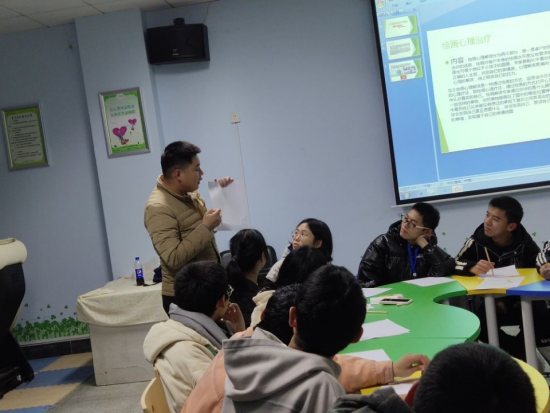 12月08日晚上七点半,388vip太阳集团在心理辅导室组织了心理委员的团体辅导活动,此次活动主题为“绘画心理治疗”,由陶庆忠老师为主持。