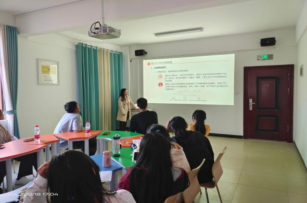 10月18日下午,388vip太阳集团开展了以“大学生心理健康”为主题的团体辅导活动,此次活动由学院心理联络部组织,辅导员黄玉娟主持,2022级全体心理委员参加。