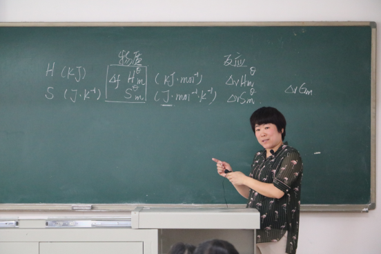 随后比赛正式开始,第一位参赛老师是方正军老师,她的授课内容为“化学反应也有奋斗目标——化学反应进行的方向”。方正军从汽车尾气的处理反应引出了自己要讲解的知识点,条理清晰明确,内容引人深思,娓娓道来,幽默风趣,旁征博引,将专深的知识用生动形象的描述、不疾不徐的语调语速,极具穿透力的标准普通话有条不紊地呈现出来。第二位参赛老师是廖淑珍老师,她所讲的内容为“芳酸类非甾体 抗炎药物的分析”。课程以鉴别布洛芬和阿司匹林为例,讲解内容充实,通俗易懂,能够让人快速学以致用,现场展示中肢体语言丰富、自然大方,讲授富有神采,表现出很强的亲和力。第三位是秦牧兰老师,她讲授的内容是超导电性。秦牧兰从一个有趣的实验现象引入课题,在增强听课同学的学习兴趣同时,也让培养了同学们对课程的兴趣。第四位参赛老师是沈静老师,她的讲课内容为“铝合金热处理强化特点”。沈静将铝合金的热处理与淬火这道工序进行对比,使我们印象深刻。第五位参赛老师是伍水生老师,他所讲的是“表面张力及表面吉布斯函数”,从生活中的表面张力现象开始介绍,同时又结合实验,有效地让听课学生更好的得学习表面张力的相关知识。参赛老师们的授课方式各有千秋,一堂堂妙趣横生的演示课赢得了在场观众热烈的掌声。
