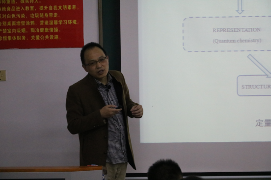 为了加深同学们对环境催化与废弃物再生化湖南省重点实验室的了解,化工院于11月5日四点在电教101开展了“完备基分子在分子结构与性能定量关系中的应用”讲座,由禹新良教授主讲,化工院部分大二学生参加听讲。