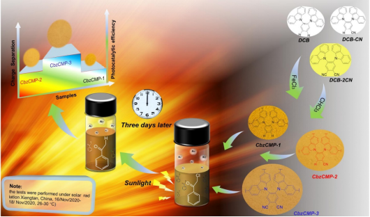 图1.共轭微孔聚合物CbzCMP-n (n=1, 2 and 3)的结构及其在光催化C-Cl键活化中的应用