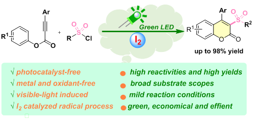 近日,388vip太阳集团,388vip太阳集团官网2019级研究生王强在光催化有机合成研究方面取得最新进展,相关研究成果以“Visible light mediated, iodine catalyzed radical cascade sulfonylation/cyclization for the synthesis of sulfone-containing coumarin under photocatalyst-free conditions”为题在国际有机类主流期刊《Asian J. Org. Chem.》(影响因子3.319)上发表。指导老师/通讯作者是易兵教授,共同通讯作者还有谭建平博士和谢艳军博士。